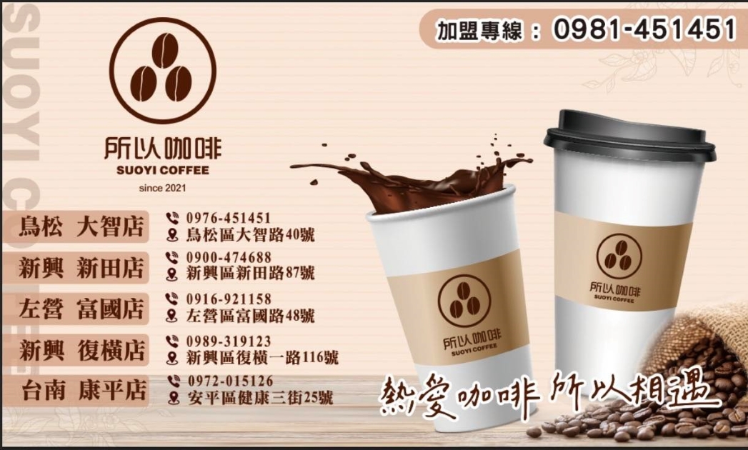 我們相信,美味不該高價,更不該只在店內享有。以不鏽鋼餐車為起點, 所以咖啡將「得來速」的靈感帶進台灣街角,結合標準化設備、外帶吧動線與外送平台, 讓每一間門市都能在小坪數中創造穩定營收。